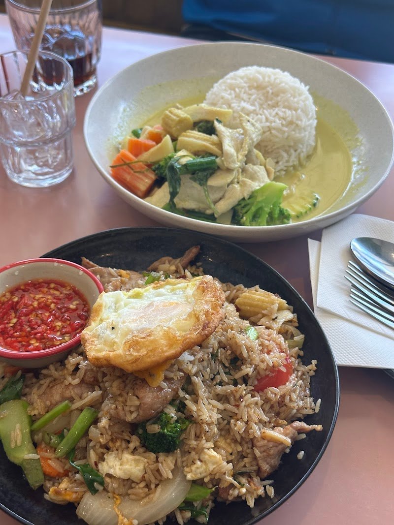The food at this place has been exceptional every single time Iโve come. Every single dish tastes amazing, and the prices are very well done. Pictured are the: Satay chicken roti rolls Massaman beef curry Chicken pad see yew Coconut rice Thai milk tea Strawberry cider Every single one was delicious. The owner is the kindest person also. The vibes inside are always bright and vibrant. Options to sit in groups or solo/on a date. Highly recommend this place to anyone in the area!