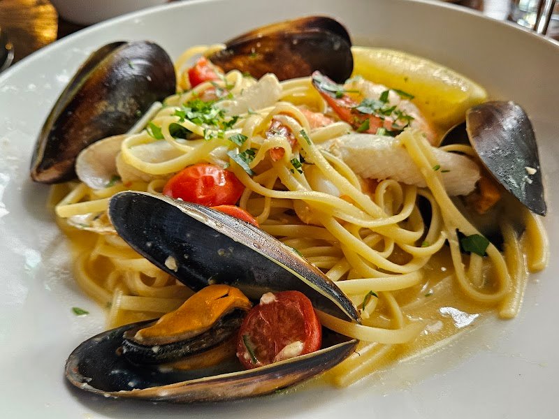 Really lovely restaurant. I came here after going to the aquarium. The bread to start was very squishy and yummy. We had glasses of the cheapest white wine. We also got the fish n chip and a delicious seafood pasta. I had a great time, itโs quite a fancy restaurant but people were dressed pretty casually. You can see the water from the restaurant especially if you sit outside. Great place and highly recommend!