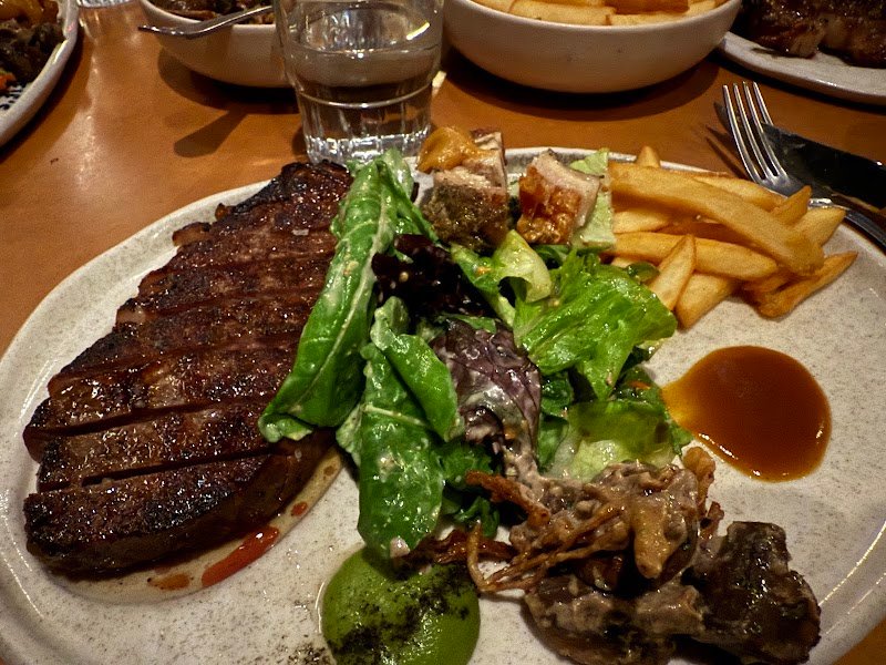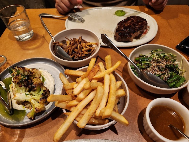 The concept is nice similar to their other restaurants Bistecca and Gidley, but the steak was disappointing. The sirloin felt tough and sinewy, and if they hadn't precut slices it would have been a disaster. The mushroom and beans sides were good. The cauliflower was just charred but not cooked at all. Chips were good. Overall we were not totally let down, but this is one where i might not return.