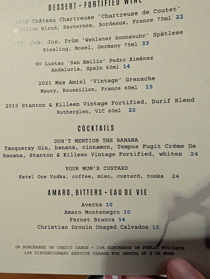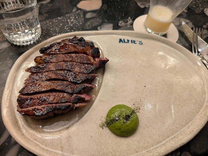 I absolutely love going to Alfieโ€™s! Three times and counting now. The steak is solid but I really come here for the sides (the brussels sprouts are out of this world) and the ice cold martinis. The burnt honey beef fat & salted chocolate crumble gelato popsicle is also a favourite. Top tip: happy hour (4-6pm) is a treat and amazing value for money (you can also get the popsicle off-menu during!). Service is friendly enough, pretty standard. The atmosphere is casual; a bit chic and vibey. I usually try to avoid going to places more than once as there is a smorgasbord of excellent food to try in Sydney, but Alfieโ€™s is a special exception.