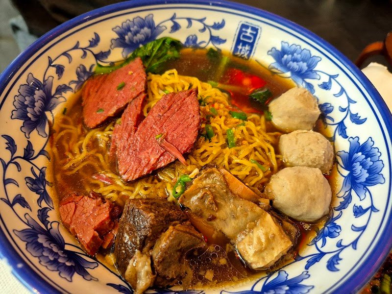 One of those places that looks simple but delivers big on flavour, comfort, and atmosphere. Small but lively space, red lanterns overhead, busy kitchen, and a steady buzz that makes it easy to settle in and stay a while. We came mainly for the congee and noodles and they absolutely delivered. The beef noodle soup was excellent. Clear but deeply savoury broth, generous portions of beef including brisket and tendon, soft beef balls, and plenty of greens. The beef was tender, the soup was aromatic without being overpowering, and everything tasted carefully cooked rather than rushed. The congee style bowls were another standout. Thick, smooth rice base topped with minced pork, liver, crispy fried shallots, spring onion, and soy. Comforting, filling, and perfect if you want something warm and soothing. It is the kind of bowl you keep spooning without thinking. The rice noodle rolls with peanut sauce were a surprise highlight. Soft, silky sheets drenched in a savoury, nutty sauce, finished with fried garlic and spring onion, with chilli on the side. Simple, rich, and very moreish. One plate disappears quickly. The cold noodle style dish with herbs, peanuts, crispy bits, and light chilli dressing was fresh and well balanced. Fragrant, slightly spicy, and great in between heavier bowls. The mix of textures works really well. Chilli is a must here. Fragrant rather than aggressively spicy, it adds another layer without overwhelming the broth. Despite how busy it gets, service is efficient and friendly. Seating is close and tables are tight, but it still works well as a long sit and catch up spot. Food comes out consistently and the pace feels relaxed rather than hurried.