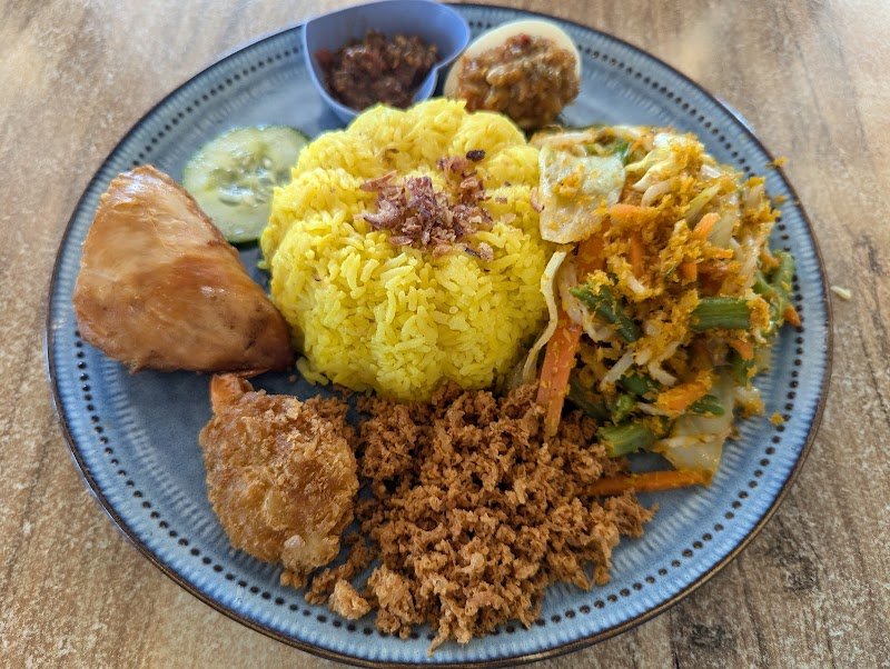 Havent been for maybe 3 years. Place is clean, welcoming & air-conditioning works. Food is decent. Gado Gado is as expected and portion is good. Lontong's first looks are deceiving as it seemed a little on the small side for its portion. But it was delicious and filling. For those who wanted, can ask for and add more sambal chilli to spice things up. Risoles (meat) was ok but not really our cup of tea. Drinks were on the sweet side so after drinking about an inch down got them to top up with water to make it less sweet. No free tap water served here. They have a large bottle for $3 I understand. Takeaway Nasi Kuning Komplit- good value & all tasted good.