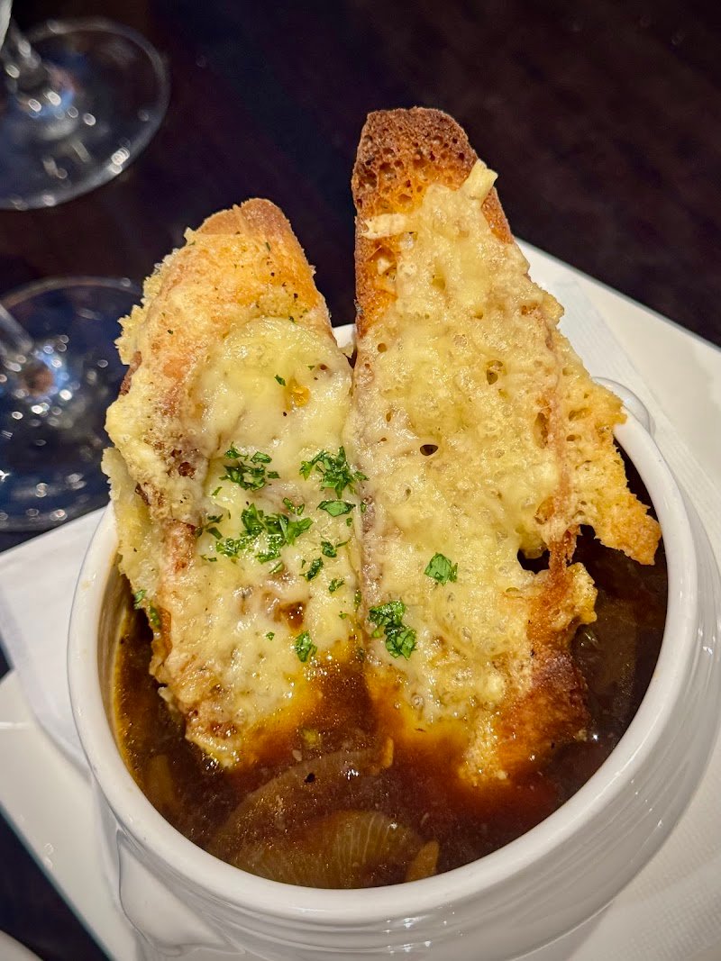First time was a total hit: un vrai parfum de France. Delicious food, wine. Magret was cooked to perfection. Trio du chef for dessert was quite a treat !! Second visit though was a bit disapointing. Overall, the experience at our table was good. We were four French guests celebrating a special occasion. Entrées were very enjoyable: the Soupe à l’Oignon, Gambas au Pernod, and Moules were all well executed. Desserts were a unanimous highlight—the Trio du Chef was outstanding and truly delicious. Mains were more mixed. Two guests ordered the fish of the day (Barramundi) and were very happy with it. The other two chose duck. Unfortunately, the Canard à l’Orange was overcooked, and the in-house duck confit was disappointing—dry and not quite the confit we are used to. Overall, most guests were happy, but the duck dishes let the meal down slightly. Service, however, was excellent throughout.