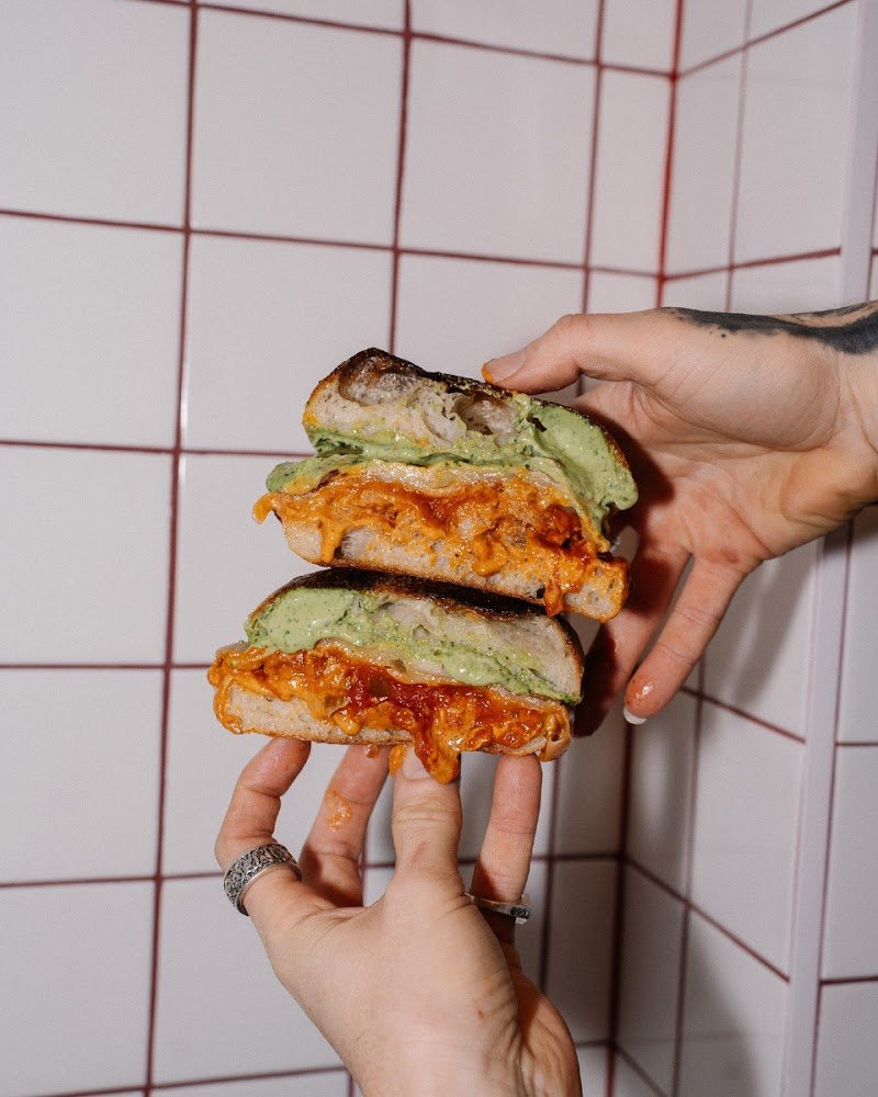 This place has a lovely vibe to it. Sandos was tasty but definitely not worth $28 and not that much filling, as you can see by the photo. It cost me $34 for a coffee and sandwich. I won't to rusing back. I also don't think it is a good look eating behind the counter where you are making meals, but that's just my opinion. Also, tying your hair back in the same area doesn't look good either. Being only open for a week, I'm hopeful they will make a few changes.