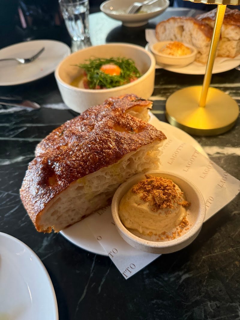 Lagott-a tell you my honest review. Staff there were super lovely and accommodating to one of our guest who was Vegan and Allium free, super informative with the menu and reassuring with what options they have for us. This place is viral with the content foodies but is it really worth it? We got their famous foccacia to start, the bread is giant, beautiful, super fluffy and I can tell has been made craftfully. But it was underwhelming for us as it was served cold, not fresh and just a tad greasy. If it was served hot and had a bit of a toasted crispiness, it would hands down be the best foccacia Iโve ever had. The brown butter definitely enhanced it, it was sweet and paired deliciously with the focaccia. We also ordered the wagyu tartare; it was umami, has some elevated crispy texture to it, however a little too salty. The kingfish crisp can be skipped, it wasnโt anything special. On to the mains, we got the squid ink prawn pipe rigate and erbette ricotta tortelli. The pipe rigate was pretty good, I think the pasta was flavourful but a little too al-dente. The ricotta tortelli was super creamy, bursts into your mouth and quite a flavour-rich dish, but itโs not a dish youโd be able to have a lot of. To pair with these pastas, we got the piper potatoes with ricotta and farm leaves salad. These were also just average and nothing to write home about. Overall, I donโt think the food was anything memorable. Nothing swept me off my feet, but nothing made me question my lifeโs purpose. Itโs a beautiful neighbouring restaurant and Iโm happy Iโve got to try and experience it for myself.