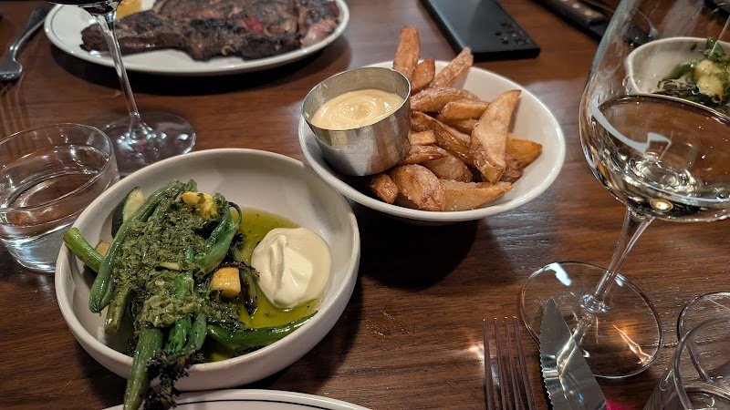 Travelling solo for my Birthday and I had booked this table months ago. As soon as I walked in I was greeted. The room was a great temp and the tables were well spread out and not sat on top of each other. Staff were super friendly and happy to answer any questions that I had. Had the bone marrow to start, was not alot of marrow on it so the crisps could had had bone marrow butter on them but the topping was tasty. I tried a different cut of meat to what I normaly get and was pleasantly suprised at the flavour, very well cooked and so tasty. It was the Stone Axe Waygu Flank cooked medium as recommended. Paired with the charred greens. Had a the creme caramel to finsh and it was delish. Cocktails were perfect. Highly recommend. My server (Charlie) was quick and very helpful and such a lovely person that it made the whole dinner a great vibe. The whole staff that I encountered were happy and gave great service.
