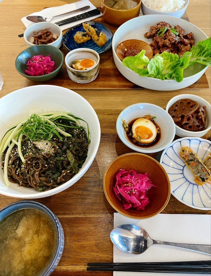 Wonderful dinner experience! Loved the atmosphere, very chill. The service was prompt and friendly. The food was amazing! Got the โSobanโ sets, which have all the little side dishes and they were all so yummy and we were stuffed after inhaling them. They have vegan and vegetarian options available. Prices were also very decent. Will definitely be going back. Edit: Also went back the next morning for coffee and was not disappointed. Great tasting coffee and my partner got a hot sesame latte which was nice too, although it tasted sweetened.