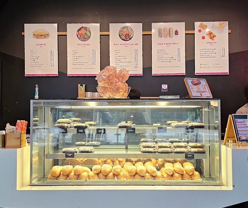 Mrs Luu's on Tank St. Great spot to grab a quick healthy lunch. Quick friendly service. You know the food is good because there's always a line up. There's a few tables outdoors that fill up quick. Be prepared to find another spot to eat your food.