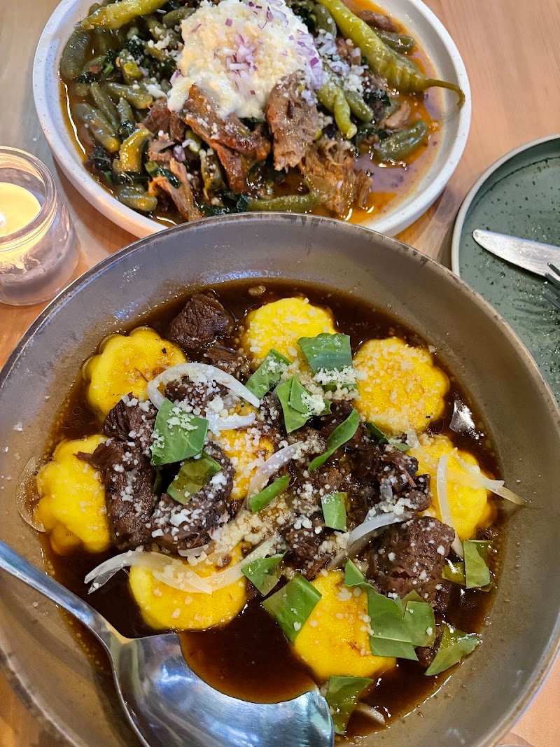 I couldn’t fault the food and the service was very friendly and attentive. Would recommend the croquette and arancini ball for the entree. Loved the Italian sausage and beef cheeks. Also loved their philosophy of buying locally sourced and seasonal produce. Would recommend sitting outside if possible as sitting inside near the kitchen did make our eyes water a little with the chilli being cooked.