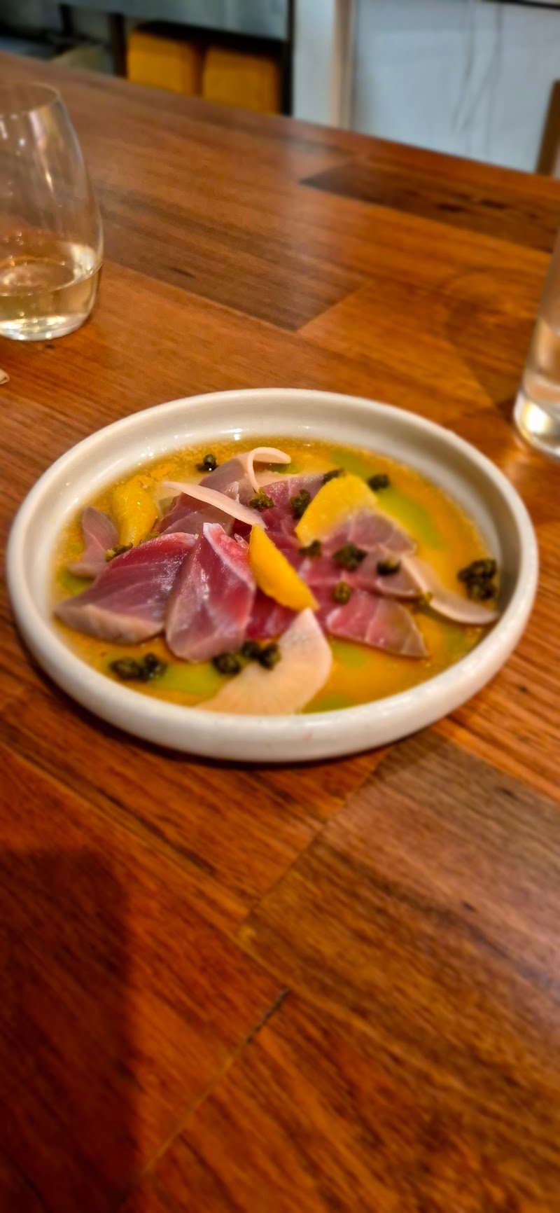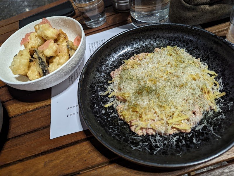 Food was unfortunately below average. We ordered 4 dishes - Oysters- they were fine nothing special but not bad. - Fried Eggplant - Very Bland and not crunchy. - chicken karaage - Freshly made and best thing we had. - prawn okonomiyaki- inedible parts. The top was burnt in many spots and the inside tasted doughy undercooked. Minimal prawn, but it was a very disappointing dish. Covered with sweet sauce to possibly hide the burnt, but it tasted bitter and charred. Service was good, attentive servers, but I would recommend go else where the reviews are skewed and I would look else where, as Launnie has many excellent venues.