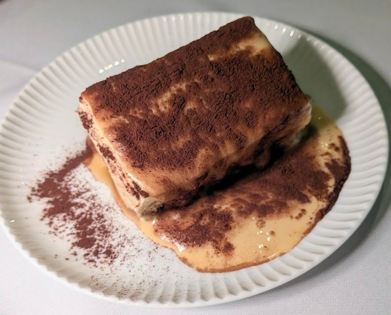 Food, especially main meals, was disappointing. Chicken and sword fish was overcooked and dry. Dessert was good - tiramisu and panna cotta were good. Wine also good but waitress failed to change wine glasses between white and red. Overall ok but disappointing and not up to the standard that the price and venue reflects.