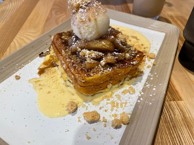 The apple crumble french toast is nice and tasty, if you are after something sweet. The corn and leek croquette was delicious, the seeded mustard cream was so tasty and flavourful, it really tied everything together. The potato rosti was also nice, the mustard dressing was a nice touch and added more flavour. Service is friendly and reasonably quick. We had ordered two dishes and one came out first and then maybe 5 or so minutes later the other one came out, would rather them both come out at the same time. Overall a really nice cafe to visit thats not in a busy spot.