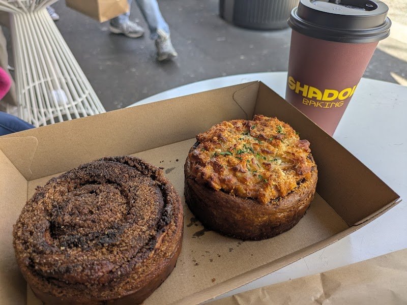 Come for the baked goods, stay for the baked goods. Firstly, the pastries are absolutely to die for - and if itโs your first time going to Shadow Baking, bring some extra cash because everything looks so good. Our order amounted to just over $60 and every piece we chose was well worth the price. Unfortunately, the same couldnโt be said for the cap I had. I asked for a double shot, and it came out tasting weak and watery - this wonโt stop me from trying their coffee again, but I hope it was just a singular issue. The staff member was very affable, wrangling the front of house with ease, dealing with our coffee and hot chocolate order - and getting it out to us quick enough - whilst serving close to a dozen other customers who came directly after us. Definitely will be back, I just wish we could try everything!