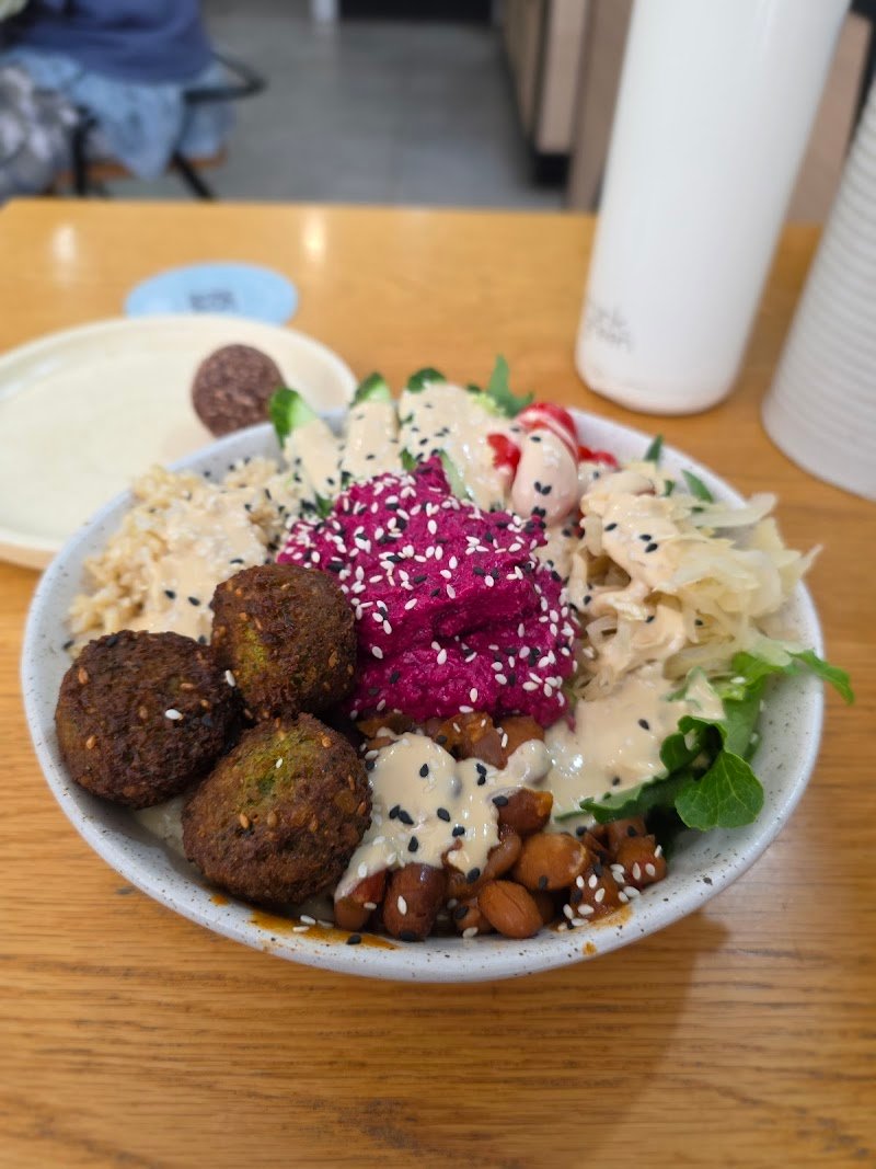 Wonderful little place. Beautiful food, friendly staff and the cakes! Oh the cakes! You can tell itโs run by vegans cos they know what we miss the most. (Dessert). I wasnโt too hungry so went for a Thai beef salad and a slice of toasted banana bread (both delicious) but Iโll definitely be back to try some of their heartier options.