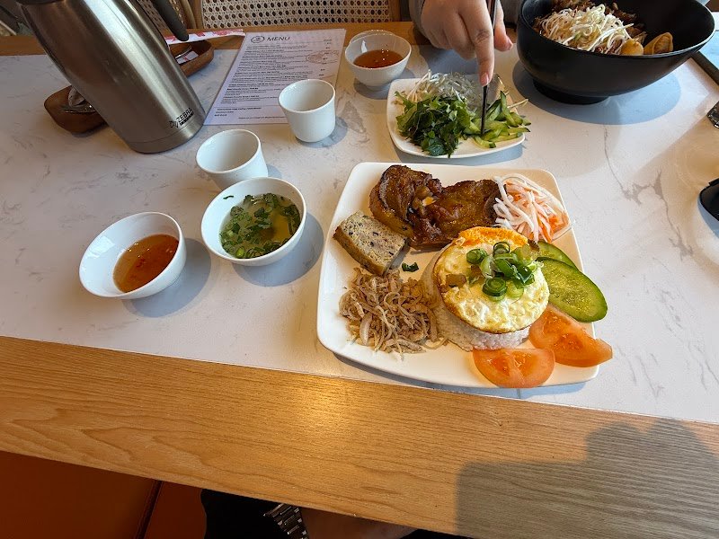5/5 stars! This restaurant is a must-visit! Located on the upper level, accessible via a stairway at the front of the street, the moment you step upstairs, you'll be blown away by the stunning, spacious, and flowy area. Staff super friendly and attentive! They really know how to make you feel welcome. From the moment we walked in, we were treated like family. Complimentary green tea and a small mandarin at the end - lovely touches! The food was amazing! I ordered the grilled pork vermicelli, which was grilled to perfection and full of flavour. The spring rolls were also delicious, and the Vietnamese coffee was a highlight - sweet but good! Price is good too! Great value for money. Highly recommend for delicious Vietnamese cuisine and excellent service.