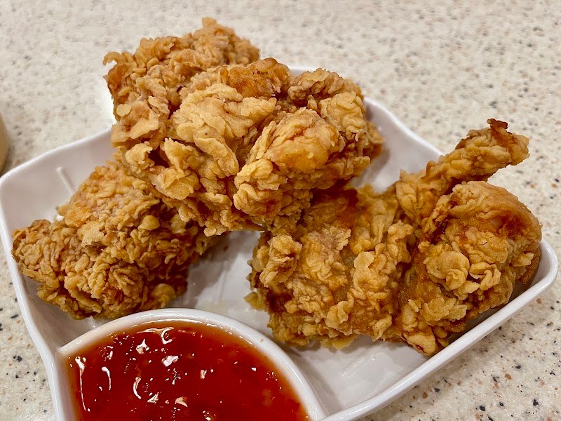 got braised beef noodle soup! the beef doesn’t look like a lot at first but they just scattered it in the bowl weird. it was so tender and flavorful. noodles were a bit soft for my liking but by no means bad, and the soup was so savorable. the fried chicken is extremely crispy and juicy, complementing nicely with the sweet chilli sauce. i’d like to come back for more!