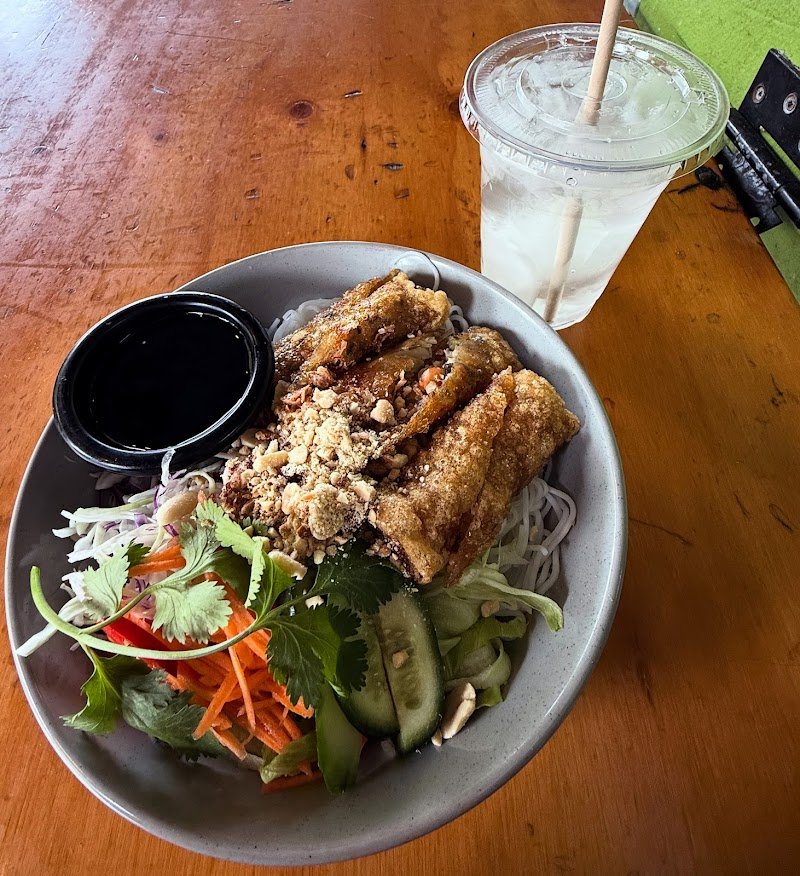 the staff are so nice and the food was very fresh and prepared quickly!! i got the crackling pork banh mi and the pork was crispy and it had fresh veggies. i also got some rice paper rolls and they were filled with well seasoned prawns and fresh mango. sooo good