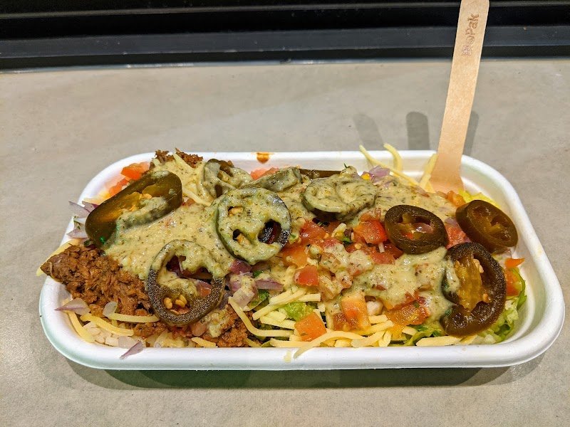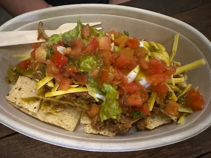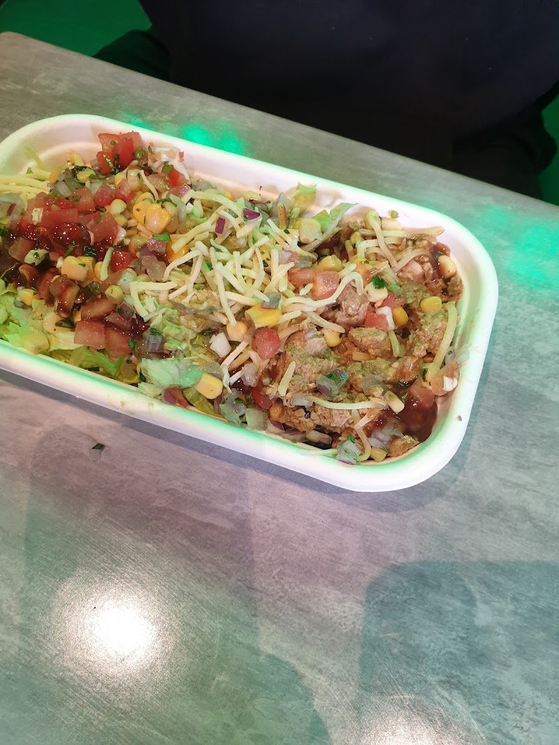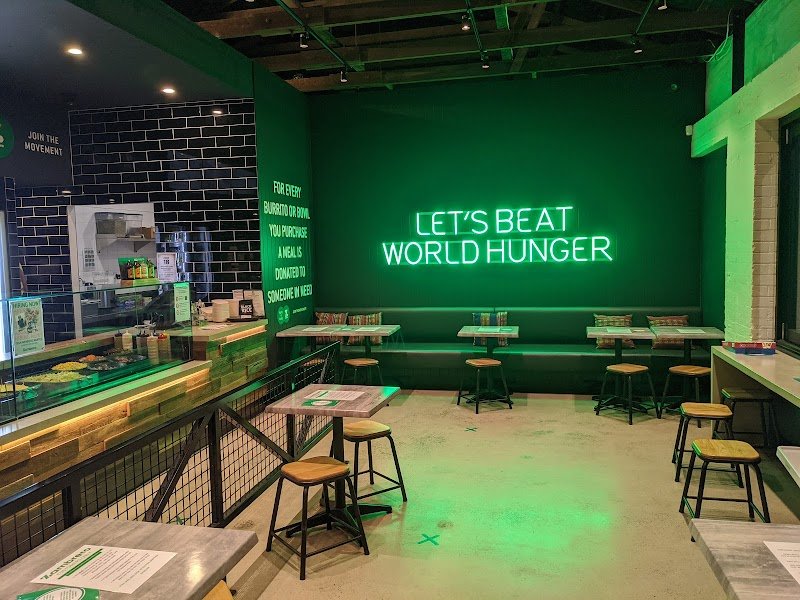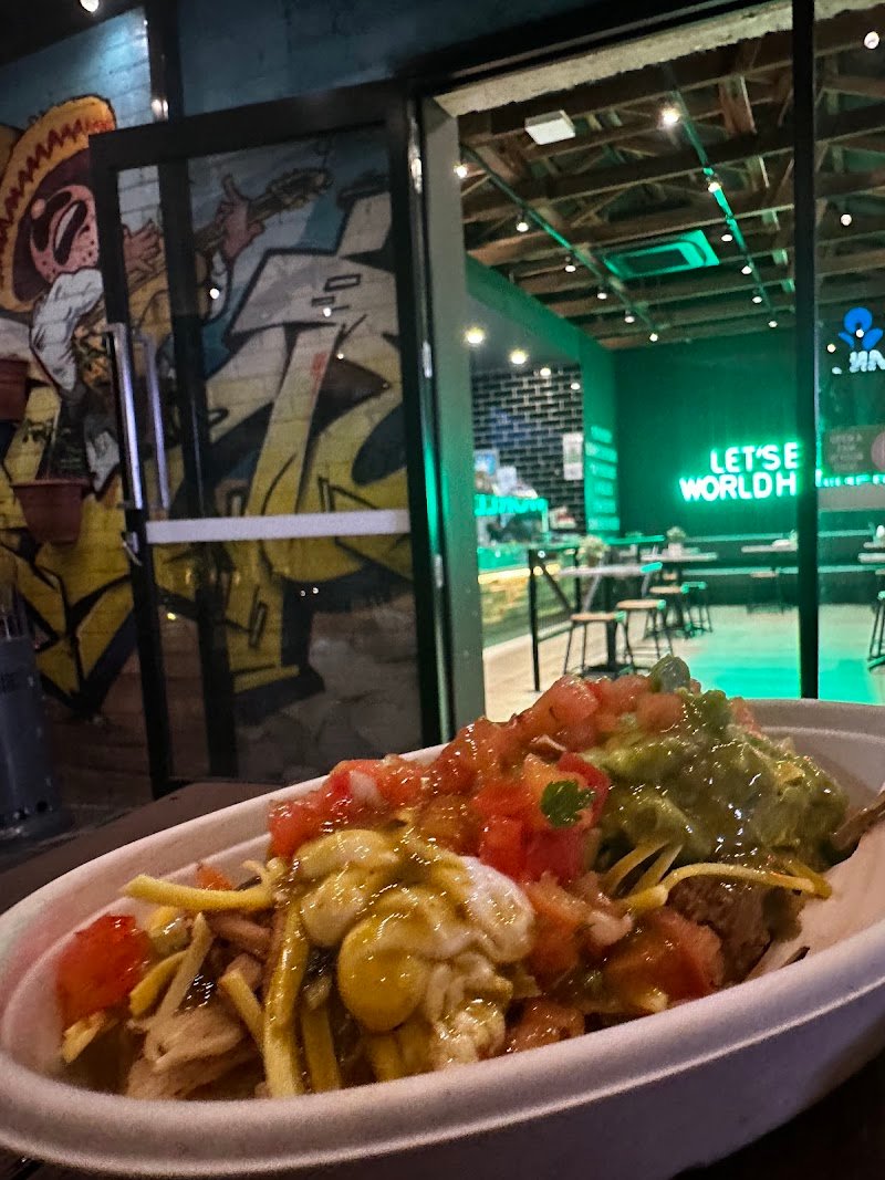 The problem with this place is that it indubitably gets compared to GYG. Something about apples and oranges but this is more like comparing a Pink Lady with a Granny Smith. I've come twice this week, once for lunch and once for tea on a Friday night. Not a good place if in a hurry. Takes a while if there's a queue (cheers to the Karen in front of us with an order of about 100 items). Possibly understaffed, only ever one server on at a time. Once you're up you're up though so be ready to order. On the topic, the "Order Here" sign? Worst positioning possible. The best way to describe it is Subway but Mexican. In that regard it's kinda gyg with a bit more of an "Eat Fresh" vibe. Again though; apples and oranges. Music? Some hits but also some songs are very miss. Seats quite low. Is that a bad thing I'm not sure but definitely very low seats. Child seat also on display. I don't have kids though (thank goodness) so not an issue for me but good to know they're catering for everyone. Pros: large degree of customisation available. Cons: large degree of customisation available. Thankfully they offer suggestions. I like this. On the Friday I ran a burrito featuring pork, white rice, beans, sour cream, guac, tomato, onion and corn salsas, cheese, lime juice and chipotle sauce. Can recommend this combo. The mix of salsas was delightfully refreshing. The sauce with a mild heat that was perfect for my sensitive bowels. I had the red chilli sauce on my first time here and while delicious and surprisingly easy on the heat at the time, it had an afterburn that left me dreading the final 'farewell' of the sauce. Biggest drawback is no sides available. Big let down. The burrito only provides mild satiation. Great for lunch, not so much for dinner. Add some potato chips to the menu and winner for sure. They proudly advertise the number of donated meals. I'm all for doing your bit for the world but the 1:1 ratio of donated:purchased meals does make me think maybe I'm paying too much? Definitely run the tomato+onion+corn salsa combo. My goodness. Neon lights are always cool too.